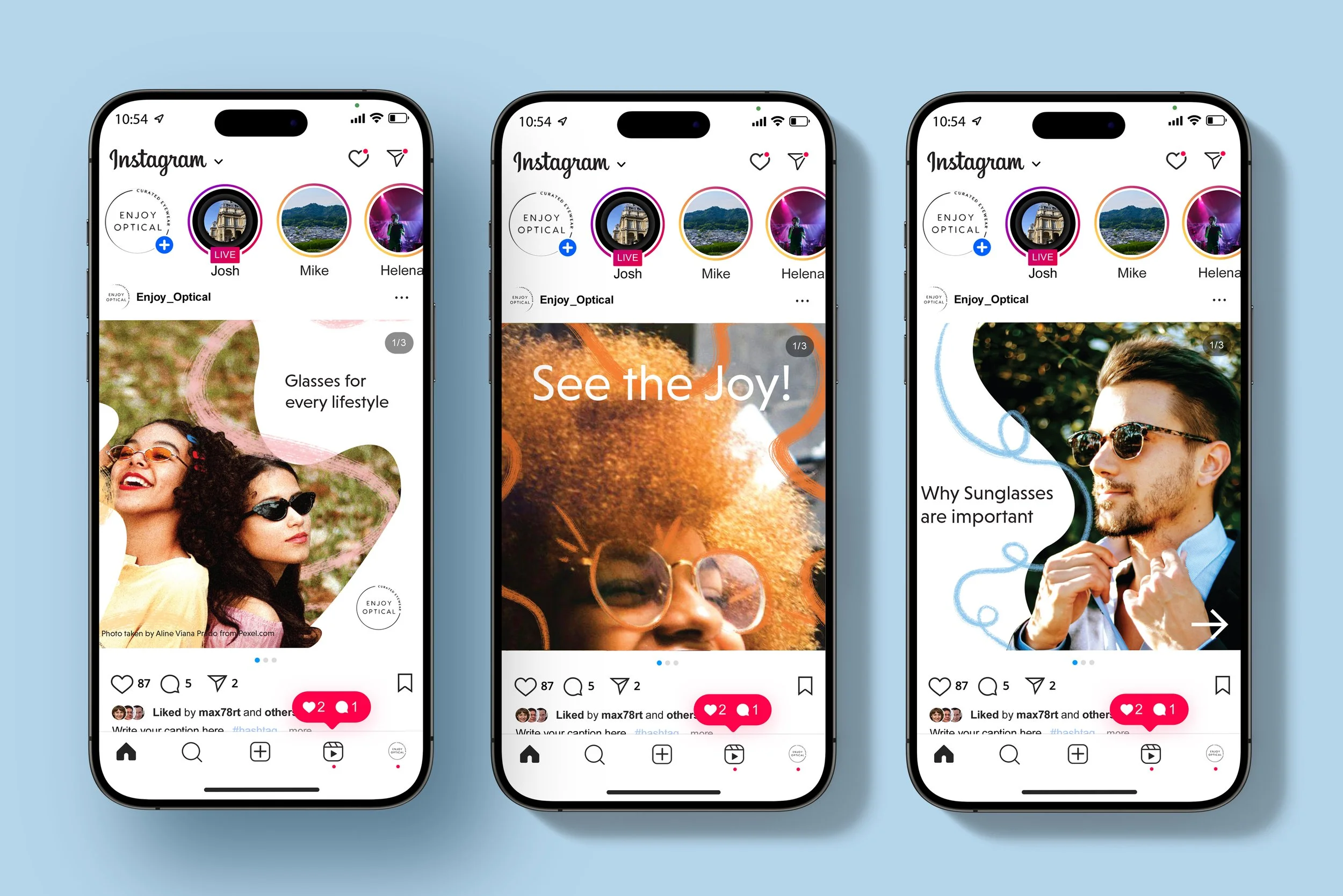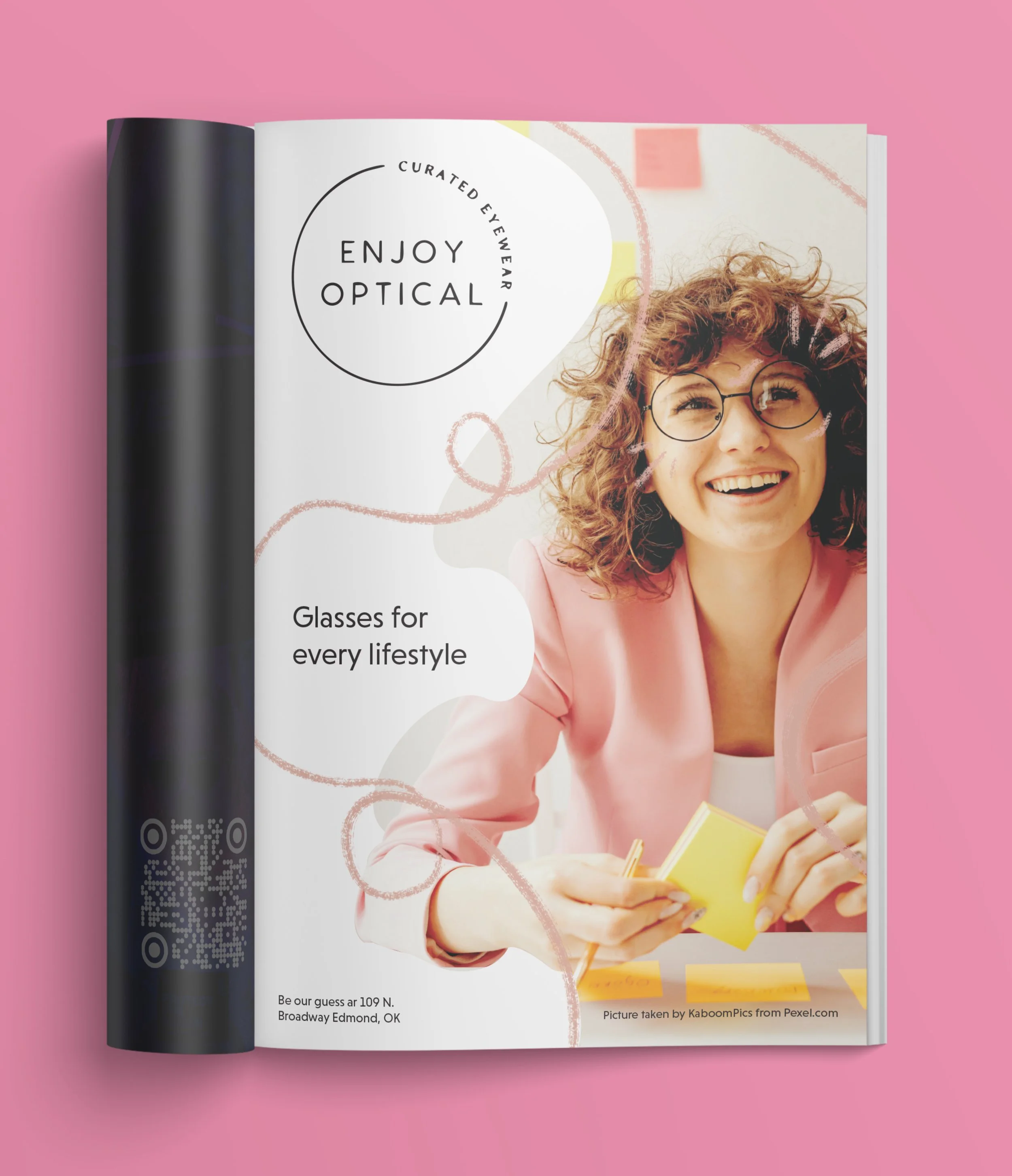 An ad campaign for Optical Joy Eyewear in Edmond that captures the brand’s high-end feel while still letting the wearer’s personality come through. The concept leans into playful action lines and bold, image-driven visuals to highlight each pair of glasses as both a statement piece and an extension of the individual, balancing polish with energy.